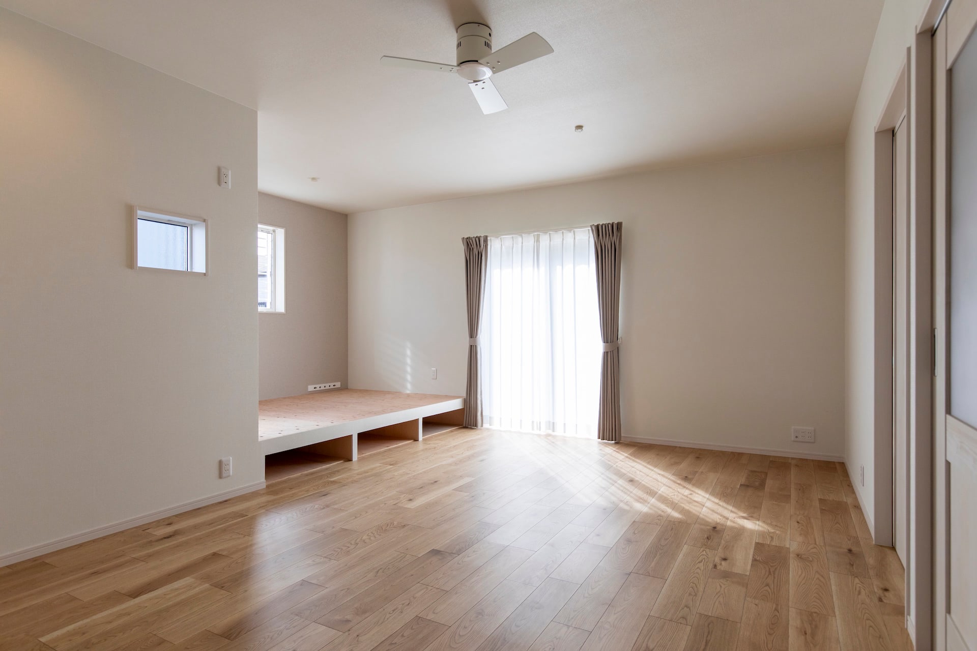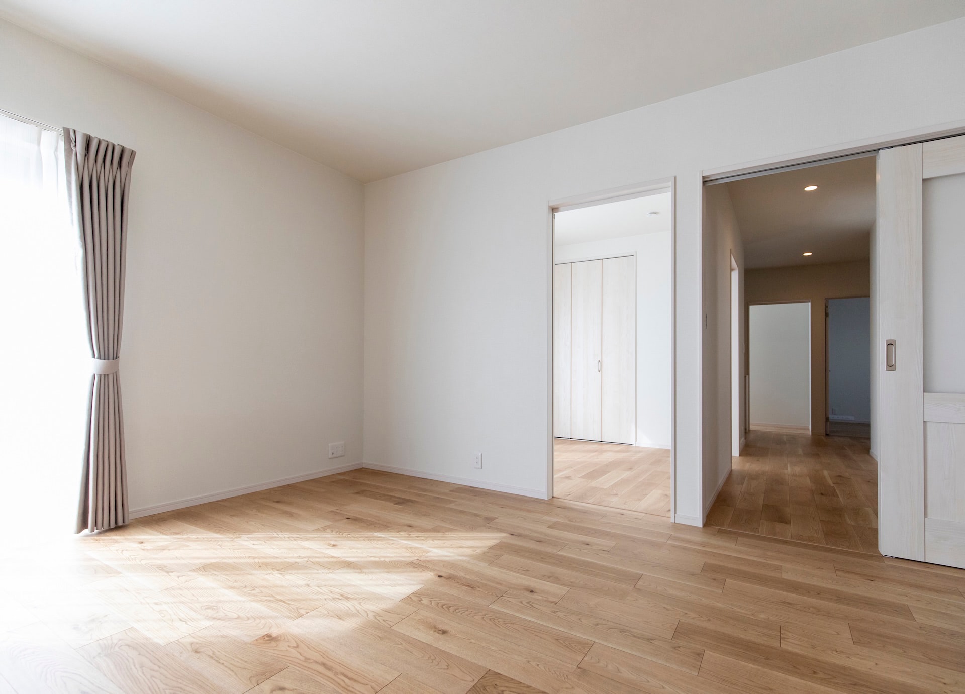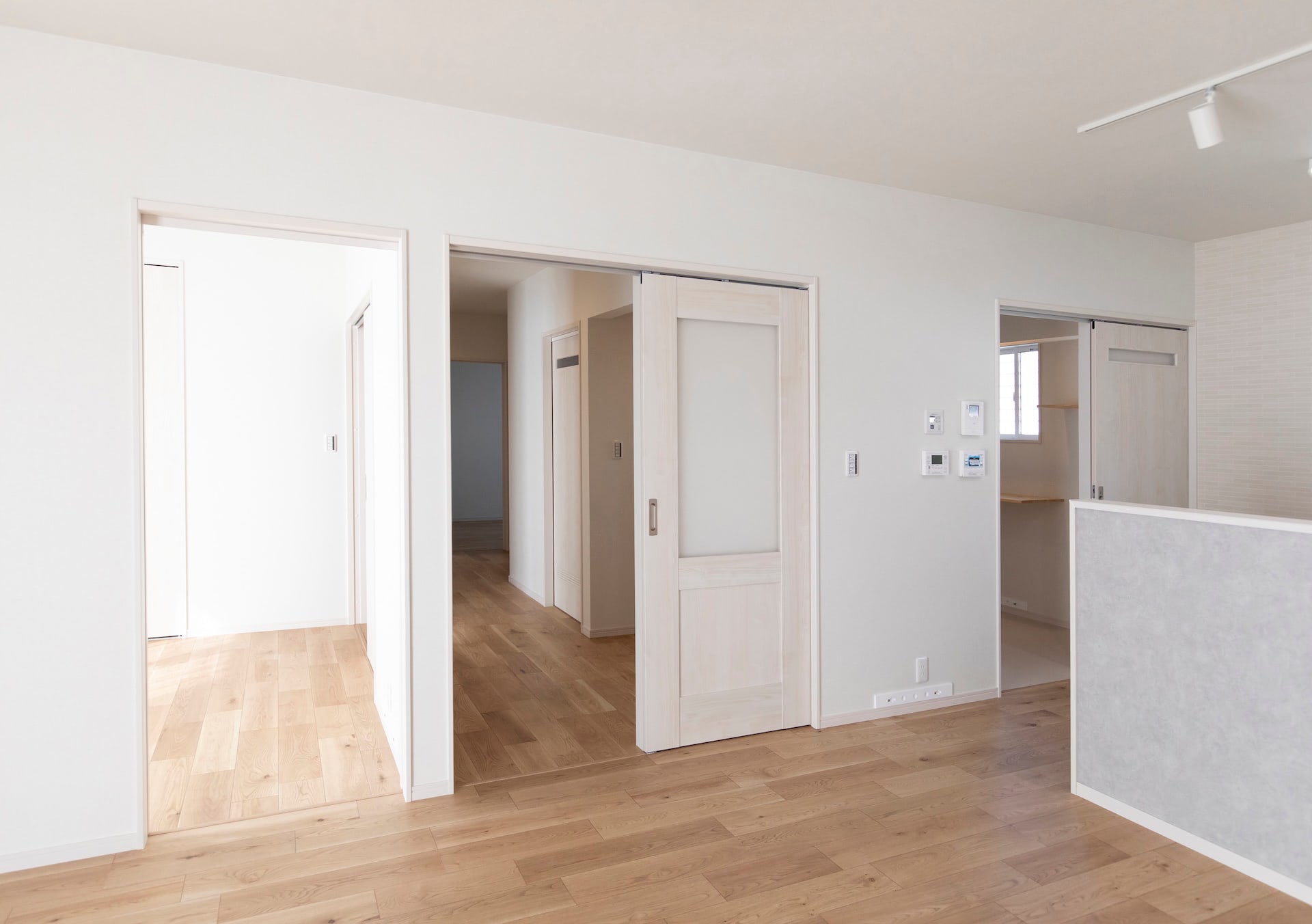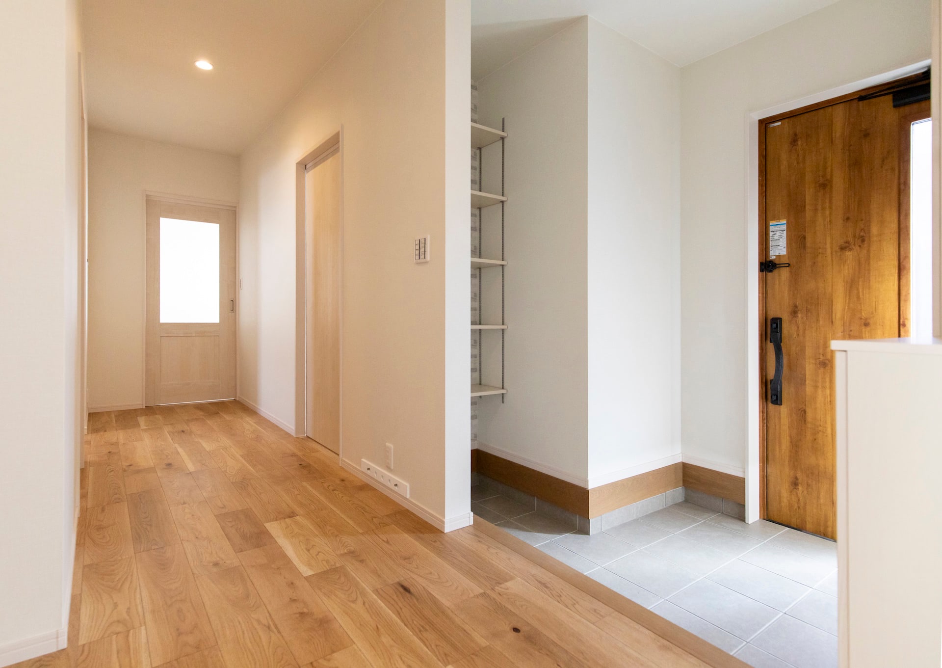 リビング~キッチン~ランドリールーム~浴室~洗面~とぐるりと回れ、生活動線もばっちりです。リビングの小上がりの畳スペースに設けられた大きな引き出しや廊下のニッチなど、収納にもこだわりました。